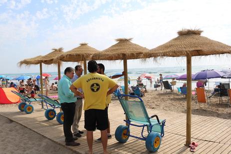 El alcalde, Andrés Martínez, ha comprobado junto al edil de Playas, Rafael Suescun, el funcionamiento de la ampliación del servicio junto al equipo prestatario del mismo. “El personal y los servicios cada vez tienen más demanda por parte de usuarios con mobilidad reducida y desde el Ayuntamiento estamos tratando de ampliar y mejorar año tras año la capacidad y posibilidades del Punto Accesible” ha asegurado el primer edil que ha agradecido “el asesoramiento y la reivindicación constante de Cocemfe para que podamos mejorar y atender cada vez a más usuarios y con mejores servicios”.