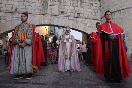 Al caer la tarde ha tenido lugar el majestuoso Desfile Papal a modo de cierre. La comitiva pontificia y medieval ha recorrido las calles principales del casco antiguo desde la Plaza de Armas hasta llegar a la Plaza de Felipe V. Miles de visitantes y vecinos han contemplado la cabalgata en la que ha participado la curia papal y varios grupos de danza y baile como la Asociación local “Ménades de Irta”.